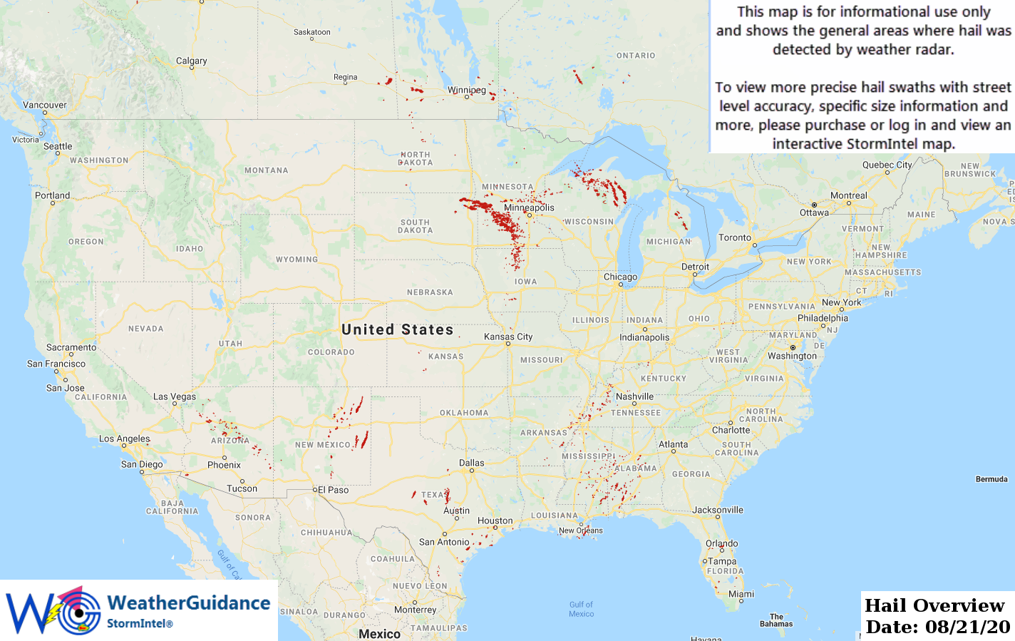 Please note: "No Significant Areas" does not necessarily mean that hail did not occur...