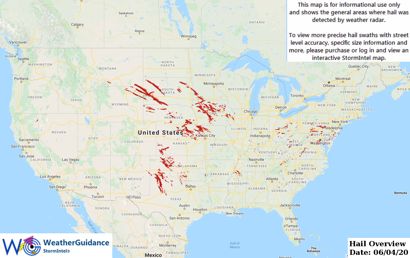 Please note: "No Significant Areas" does not necessarily mean that hail did not occur...