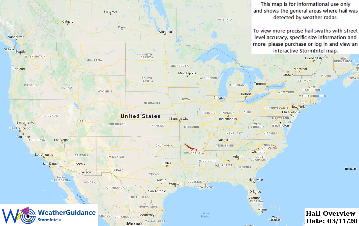 Please note: "No Significant Areas" does not necessarily mean that hail did not occur...