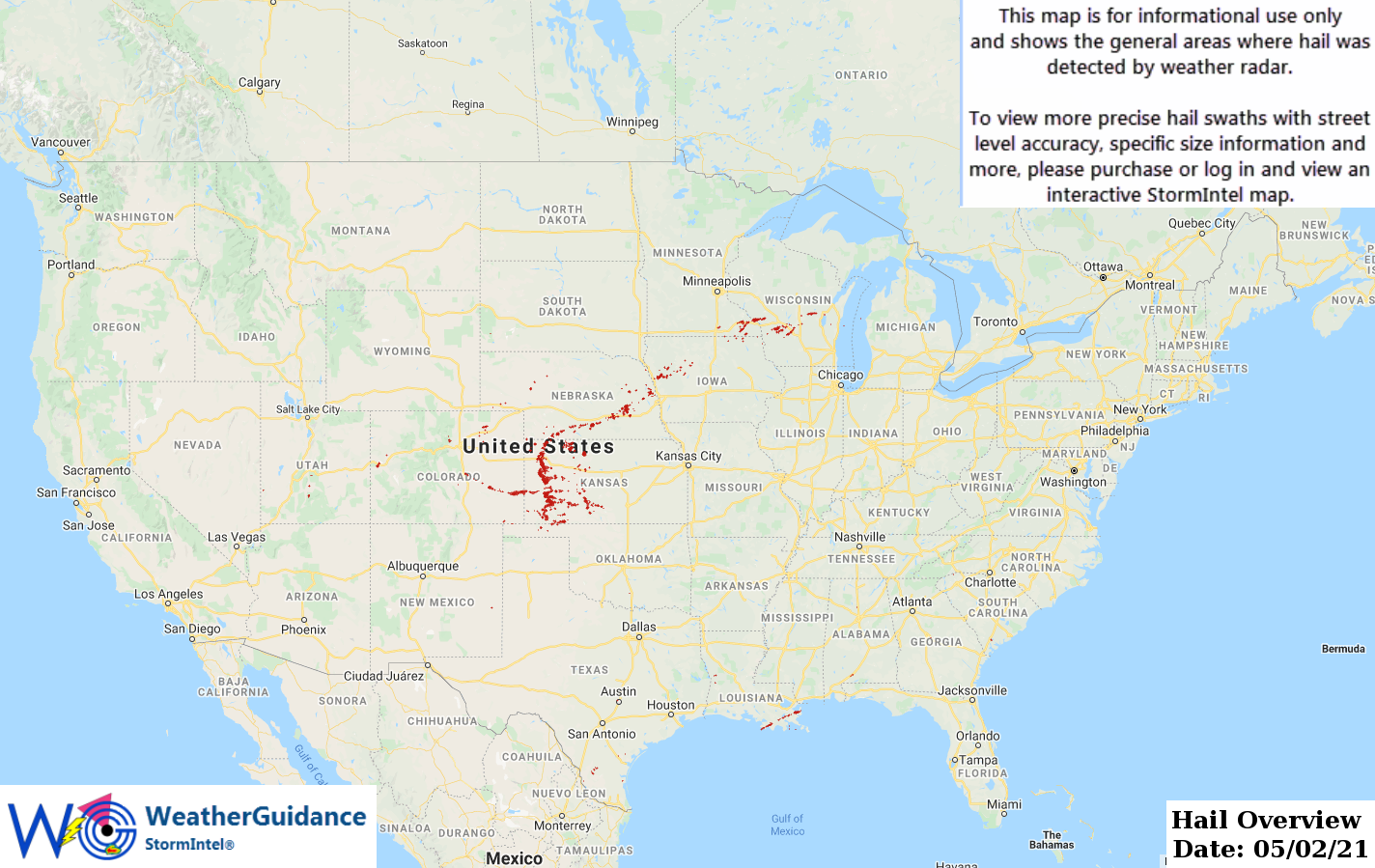 Please note: "No Significant Areas" does not necessarily mean that hail did not occur...