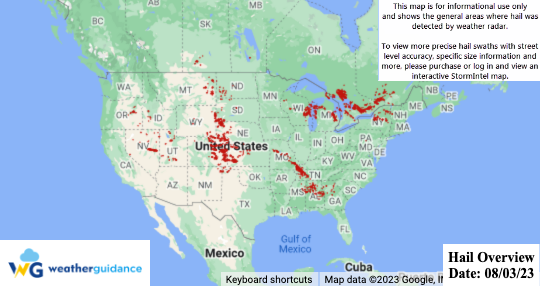 Please note: "No Significant Areas" does not necessarily mean that hail did not occur...