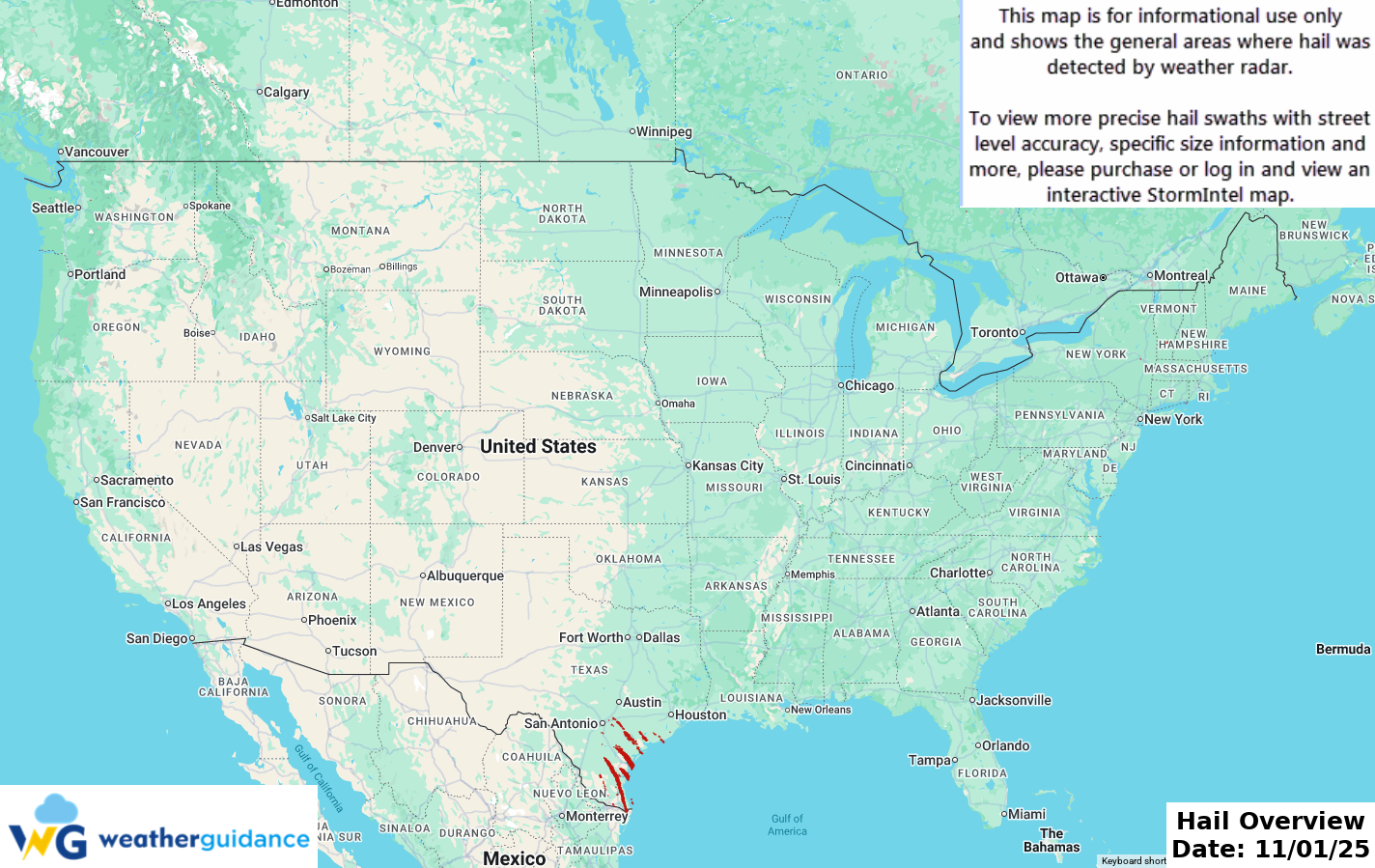 Please note: "No Significant Areas" does not necessarily mean that hail did not occur...